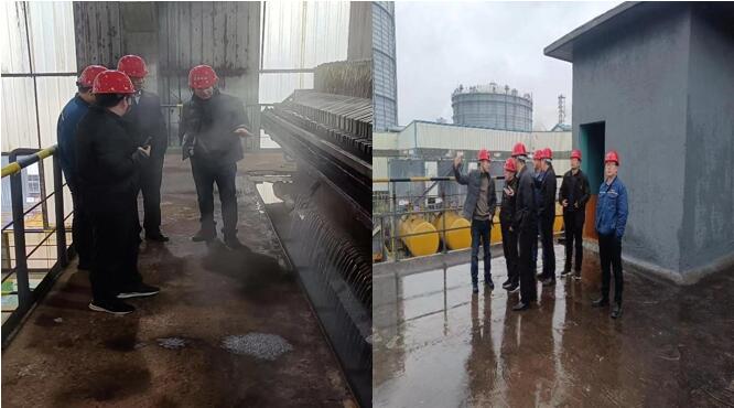 相關(guān)方領(lǐng)導(dǎo)新區(qū)水處理反應(yīng)釜、壓濾機(jī)、吹氨塔現(xiàn)場參觀交流